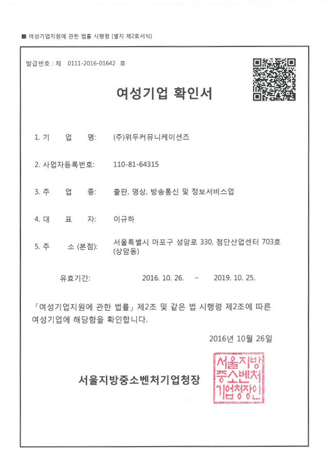 ㆍ 법인설립(박정호 장은숙 공동대표)