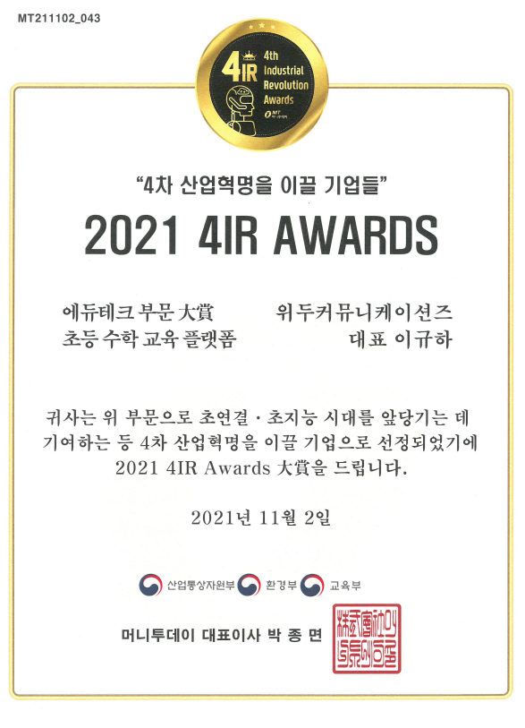 2021 4IR AWARDS 대상 페이지 정보 작성자 WeDu 댓글 0건 조회 10,612회 작성일 21-12-31 13:01 본문 2021-11-02 2021 4IR AWARDS 대상 머니투데이 List Previous2021 소년한국 우수 어린이 도서 22.01.06 Next2020 소년한국 우수 어린이 도서 선정 21.12.31