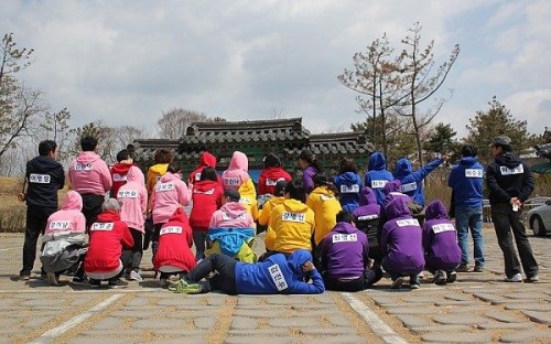 35명의 직원들이 블루팀, 레드팀, 핑크팀, 옐로우팀, 퍼플팀 이렇게 5개팀으로 나뉘어