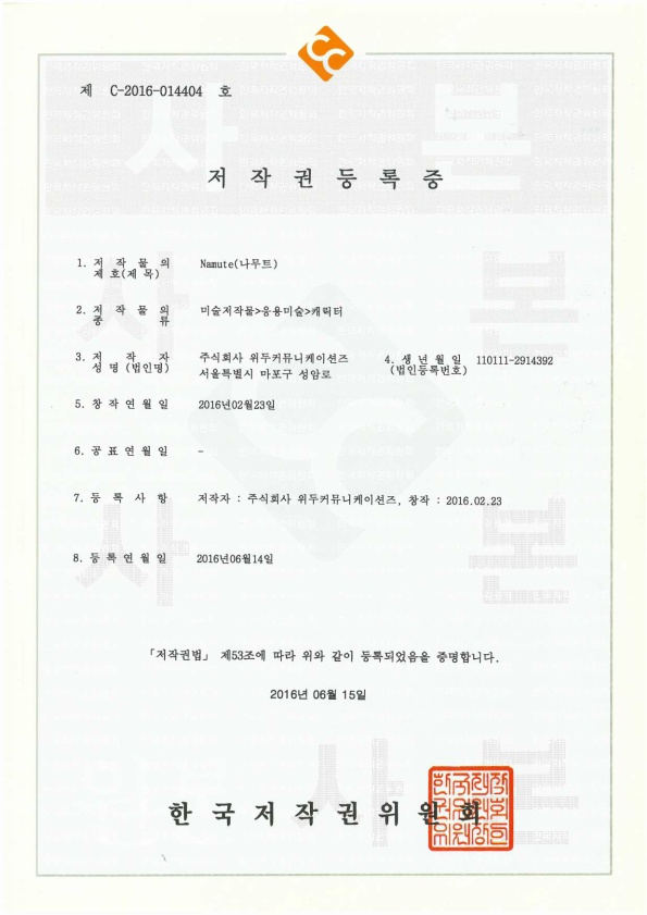 [한국/저작권] 나무트 페이지 정보 작성자 WeDu 댓글 0건 조회 6,165회 작성일 19-05-30 19:08 본문 2016-06-14 저작권 C-2016-014404 나무트 / 미술저작물>응용미술>캐릭터 List Previous[한국/저작권] 리안 19.05.30 Next[한국/저작권] 길리 19.05.30