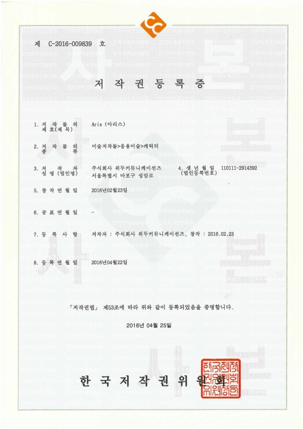 [한국/저작권] 아리스 페이지 정보 작성자 WeDu 댓글 0건 조회 6,204회 작성일 19-05-30 19:09 본문 2016-04-22 저작권 C-2016-009839 아리스 / 미술저작물>응용미술>캐릭터 List Previous[한국/저작권] 필립 19.05.30 Next[한국/저작권] 리안 19.05.30